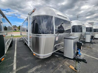 The first thing you will notice about this International travel trailer is the calming atmosphere! Airstream has done a wonderful job of creating a tranquil sanctuary for you to take your vacations in. The kitchen has a three-burner cooktop, stainless steel sink, and an 8-cu. ft. refrigerator so that you can create new and exciting dishes each time you are away. This trailer also has excellent storage space with the overhead storage lockers, the wardrobe with hanging bar, the under-bed storage, and the exterior storage compartment. You can also find great entertainment as you spend your time in this trailer because the two 12V DC Smart TVs will allow you to watch a movie on the Blu-Ray DVD player. Some available options for this model include the optional twin beds in place of the queen bed and the optional rear hatch with a front bunk. If the front bunk option is chosen, it will replace the overhead storage in the bedroom!