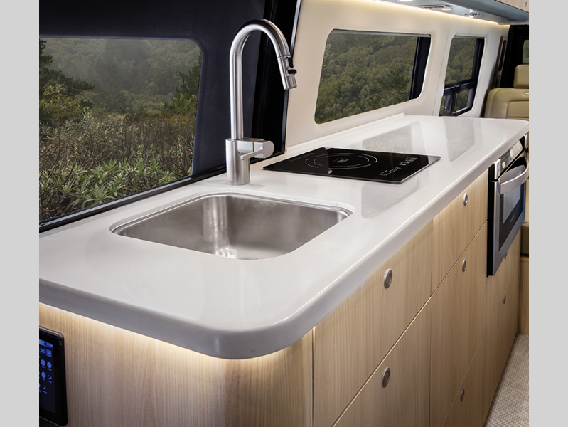 Sleeps 2 Length 24 ft 6 in Ext Width 7 ft 9 in Ext Height 9 ft 9 in Int Height 6 ft 2 in Interior Color Classic Canyon, Modern Greige, Tommy Bahama Exterior Color Tenorite Grey Metallic, Hightech Silver Hitch Weight 5000 lbs GVWR 11030 lbs Dry Weight 9423 lbs Cargo Capacity 1708 lbs Fresh Water Capacity 23 gals Grey Water Capacity 24 gals Black Water Capacity 11 gals Fuel Type Diesel Engine Mercedes-Benz 2.0L Turbo Charged 4-Cylinder Chassis Mercedes-Benz Sprinter 3500 Extended AWD Horsepower 208 hp Fuel Capacity 24.5 gals Wheelbase 170 in Torque 332 ft-lb Refrigerator Type 12V Refrigerator Size 5.0 cu ft Cooktop Burners 1 Number of Awnings 1 Water Heater Type Diesel Fired Hydroinc AC BTU 13500 btu TV Info 2 LED Widescreen HDTVs Awning Info Power Armless with Auto-Retract Gross Combined Weight 15250 lbs Shower Type Wet/Bath Shower Electrical Service 30 amp