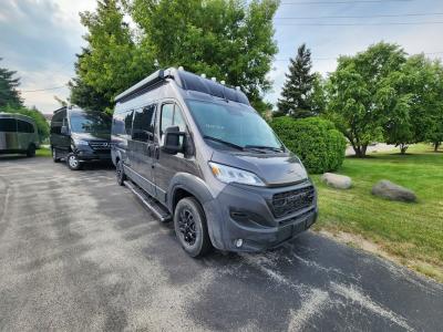 Sleeps 2 Length 20 ft 11 in Ext Width 8 ft 3 in Ext Height 9 ft 5 in Int Height 6 ft 2 in Interior Color Moonstone Grey, Admiral Navy Exterior Color Bright Silver Metallic, Granite Crystal Metallic GVWR 9350 lbs Dry Weight 7661 lbs Cargo Capacity 1689 lbs Fresh Water Capacity 28 gals Grey Water Capacity 19 gals Black Water Capacity 12 gals Generator 2.8 kW Gasoline with Remote Start Fuel Type Gasoline Engine 3.6L Pentastar V6 24V VVT Chassis RAM ProMaster 3500 Horsepower 276 hp Fuel Capacity 24 gals Wheelbase 159 in Torque 250 ft-lb Refrigerator Type 12 Volt w/ Marker Board Front Refrigerator Size 3.2 cu ft Cooktop Burners 1 Number of Awnings 1 Water Heater Type Gas Fired Hydronic AC BTU 13500 btu Awning Info 13' Manual Awning with Legs and Lighting Gross Combined Weight 12000 lbs Shower Type Wet/Bath Shower Electrical Service 30 amp